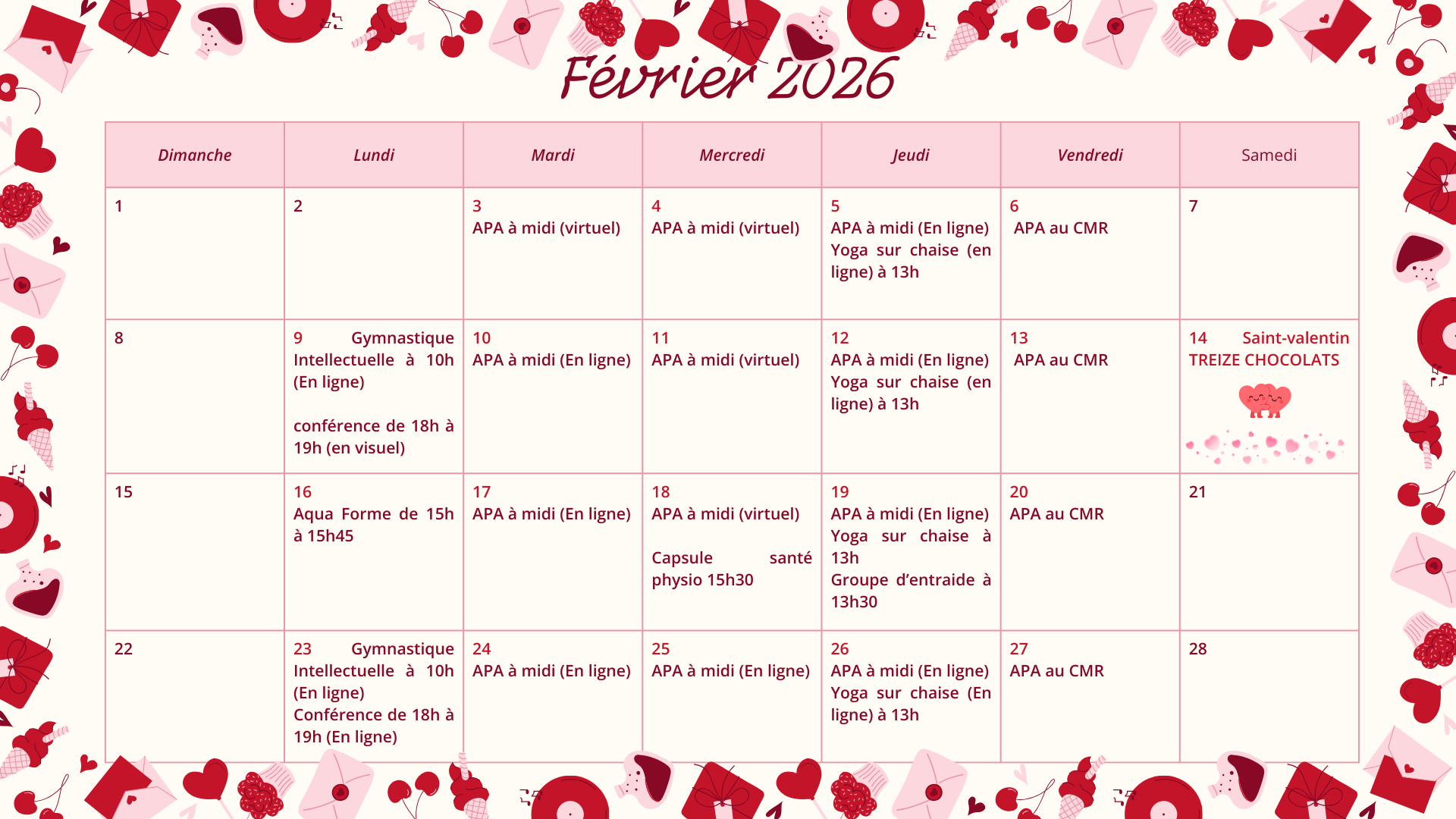 Des séances d’Activités Physiques Adaptées en virtuel et en présentiel, pour les personnes à mobilité réduite ou ayant des limitations physiques, sont offertes et animées par nos kinésiologues.